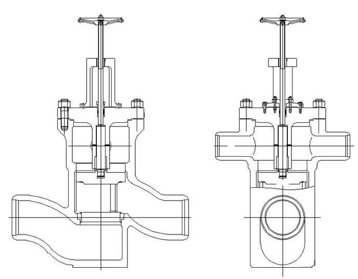 高加進(jìn)出口四通閥(H62Y、高加出口止回閥)示意圖如下: